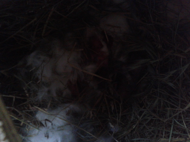 Bigfoot ha scritto: :o Ho bisogno di spiegazioni, e magari conforto  Ho una coppia di conigli, si sono accopiati il 15 aprile, e ieri puntuale come un orologio ha partorito. Questa mattina uno era fuori dal nido, così dopo pranzo ho dato un occhio dentro e dopo qualche minuto ad osservare non notando nessun movimento o rumore, ho provato a toccare con un dito un piccolo...l'ho sentito freddo(morto). Vi ho fatto alcune foto...anche se non è bello ma magari possono sevire a chi ha un occhio esperto. Mi sembra abbia partorito 4 coniglietti...ma sono tutti morti!! Mi sapete spiegare cosa sia successo??? Perchè sono morti?? in cosa ho sbagliato?? ciao bigfoot.. mi dispiace per l`accaduto...ma la gestazione quanti giorni è durata? era la prima? hai per caso toccato il nido prima del parto? il nido comunque é bello fatto bene....mi sembra di notare la mancanza delle zampe anteriori....o vedo male nelle foto...