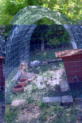 ) a circa una ventina di metri da casa c'è una capanna in muratura adibita a ricovero attrezzi ect ect, da questa capanna parte poi un recinto di circa 40 mq una volta adibito a pollaio ed è qui che per ora ho sistemato il gabbione dove dorme l'imputato e ho costruito (parole forti eh) un mini recinto dove tenerlo di giorno MAAA urge una soluzione definitiva ovvero un recinto fatto bene con tutto l'occorrente per farlo vivere fuori (se entrano animali in casa poi esco io con le valigie e un ciaone da parte del marito