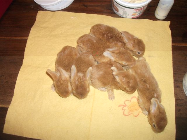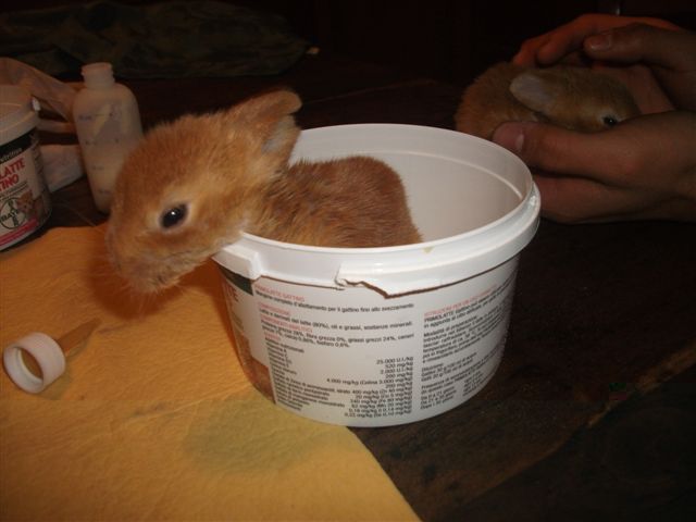 Le cose proseguono con successo i conigli crescono e diventano ogni giorno più ingordi ed agitati Per sopperire alla ginnastica intestinale della madre li costringo ad esercizi fisici spostandoli da una scatola ad un'altra li costringo a passeggiare e muoversi questo provoca velocemente lo svuotamento delle vesciche :?