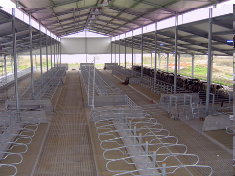 poi sotto per la posa delle rastrelliere divisori , partirei dal alto lungo che da verso il nord , con un apssaggio epdonale di 1 metro , conchetta di 50cm x i mangimi , box di 6metri , corsia di almentazione di 3,5 metri , poi di nuovo una strelliera x i box vhe danno verso sud , e il paddox x le vacche..