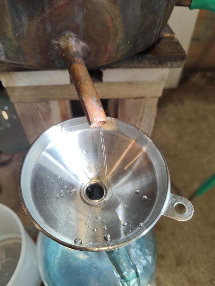 Ciao, i moonshiner, andavano e vanno a fiamma diretta...  Se distilli liquido, come vuoi fare, non hai bisogno di un bagno maria, che serve per non bruciare l'insilato quando fai le grappe o altri distillati di frutta dove è presenta appunto la frutta. Io che volevo fare entrambi, me lo sono costruito, inutile dirti che preferisco questo tipo a colonna e ne sono molto contento, anche se non è stato facile reperire il tutto e calcolare le giuste proporzioni. Tieni conto che per avere buoni riultati devi essere minimo 30 a 50 litri, visto che poi vai a distillare ben poco, a volte proprio poco, e con alambicchi piccoli hai difficoltà a controllare la temperatura, che è molto importante. A seguire alambicco, griglia di protezione per eventuale insilato e risultato in funzione. Qui un pò di storia; https://www.forumdiagraria.org/distillati-e-liquori-f114/alambicco-e-distillazioni-varie-t117133-70.html