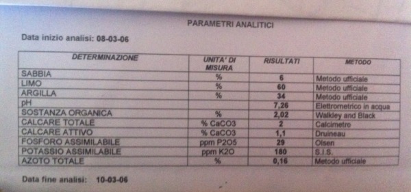 Salve,avrei una discreta possibilità di affittare un appezzamento di terra in prov. di Piacenza,il proprietario ha fatto molto tempo fa le analisi del terreno,non so se riportano tutti i paramentri richiesti in ambito elicicolo ma alcuni dei più importanti,credo di sì. Per quanto siano,come già ho detto,un pò datati,magari i più esperti sapranno dirmi qualcosa. Allego file con lo specchietto dei risultati. Grazie a chi vorrà rispondermi.