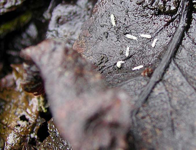 aggiungo un altra cosa, su un paio di morte ho trovato questi, sarebbero collemboli bianchi, la foto l'ho presa da internet cercando "acari chiocciola" e è saltato fuori che questi animaletti possono infastidire l'animale fino a sfinirlo e negli esemplari piu grandi penetrano attraverso il pneumostoma. certo potrebbe essere che l'animale sia stato intaccato da questi parassiti dopo morto.. qualcuno ne sa qualcosa?
