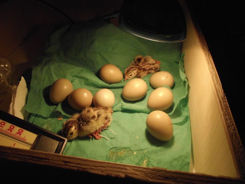 Stamattina mi sono alzato per la colazione e sentivo un pigolio...ho aperto e due fagianotti erano fuori dall'uovo!!! Che sorpresa!! Unico difetto, non si reggono in piedi...le altre uova per ora non danno segni vedremo