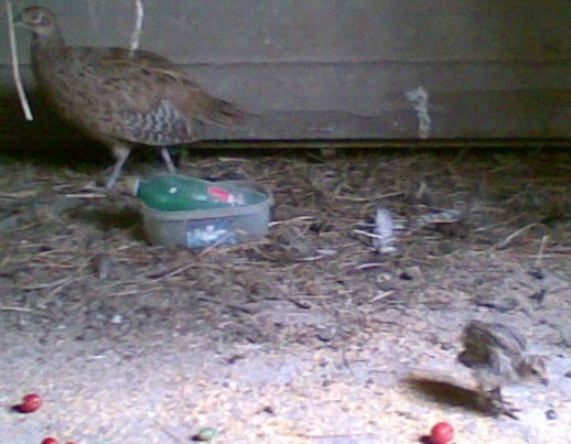 Adesso di foto disponibili non ne ho, le scatterò al più presto. Io comunque i fagiani li allevo ad una densità di molto inferiore alla norma, calcola che alloggio 2 coppie, una coppia alla voliera a cielo aperto grande 35 di metri quadri ed un'altra coppia la alloggio in una casetta rurale di campagna dove deposito fascetti di potatura di vigna. Qui i fagiani oltre ad essere in totale tranquillità, isolati da rumori, dal fastidio di eventuali predatori, li alimento con granaglie Biologiche ed integro con frutta, verdure, erba, ghiaia ecc. Il successo di cova è garantito perchè (oltre la selezione che è alla base) i fagiani non hanno stress e sbattono alla rete come una galera, quindi vedendo il muro non impazziscono per tentare la fuga, poiho messo una serie di fili che scoraggiano i fagiani ad ogni tentativo di sbattere al vetro della finestra. Si sentono quindi sicuri e coperti sotto i fasci di legna e vi nidificano. A circa 2 mesi vengono separati dalla madre e alloggiati a cielo aperto,cioè agli agenti atmosferici (non che la rete è assente nella parte superiore della voliera). Da qui i fagiani si acclimano e dormono appollaiati sui posatoi. Soltanto per il volo sono un pochino carenti, ma carenti rispetto ai selvatici, nulla a che vedere con i fagiani d'allevamento commerciali! Se qualcuno è interessato li può prenotare e può venire a verificare di persona la cova! Saluti.
