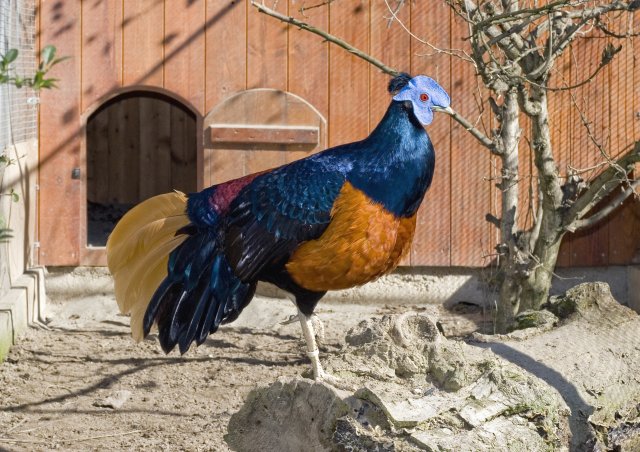Conosco il proprietario del fagiano in questione,l ho pure ammirato dal vivo,è un fagiano nobile,in Italia c è qualche allevatore che lo alleva.Non è molto allevato perchè oltre ad avere un costo un pò elevato (circa 400 euro a coppia) si tratta di una specie tropicale,quindi richiede cure particolari in inverno,mese in cui andrebbe tenuto in locale protetto e con temperatura mai sotto zero,inoltre riproduce al terzo anno.