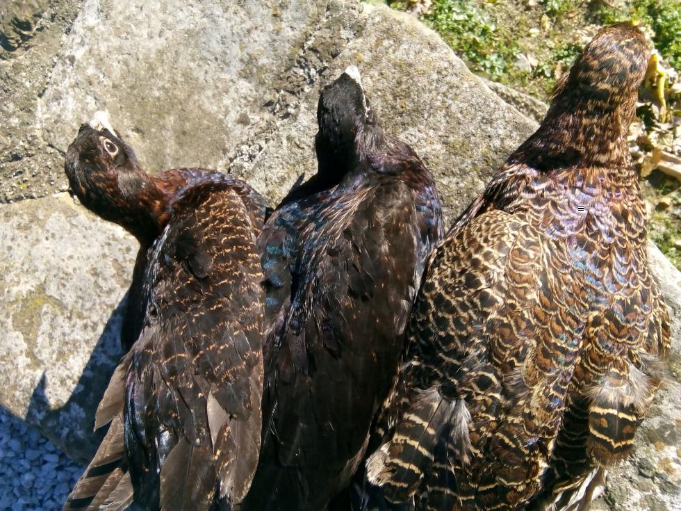 Femmine a confronto di ipermelanico, tenebroso e incrocio di tenebroso x fagiano comune.