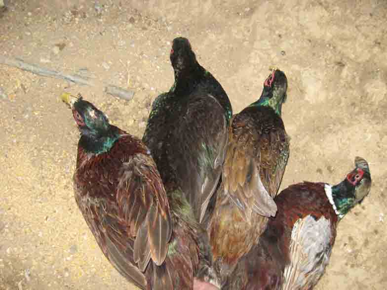 da sinistra: fagiano colchico, tenebroso, tenebroso x mongolia, mongolia