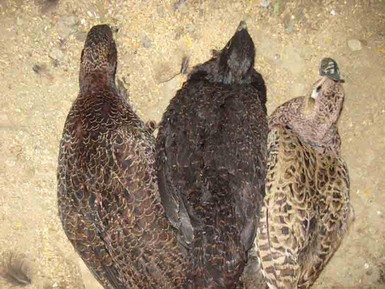 Commento file: da sinistra: fagiano femmina tenebroso x mongolia, femmina tenebroso, femmina mongolia