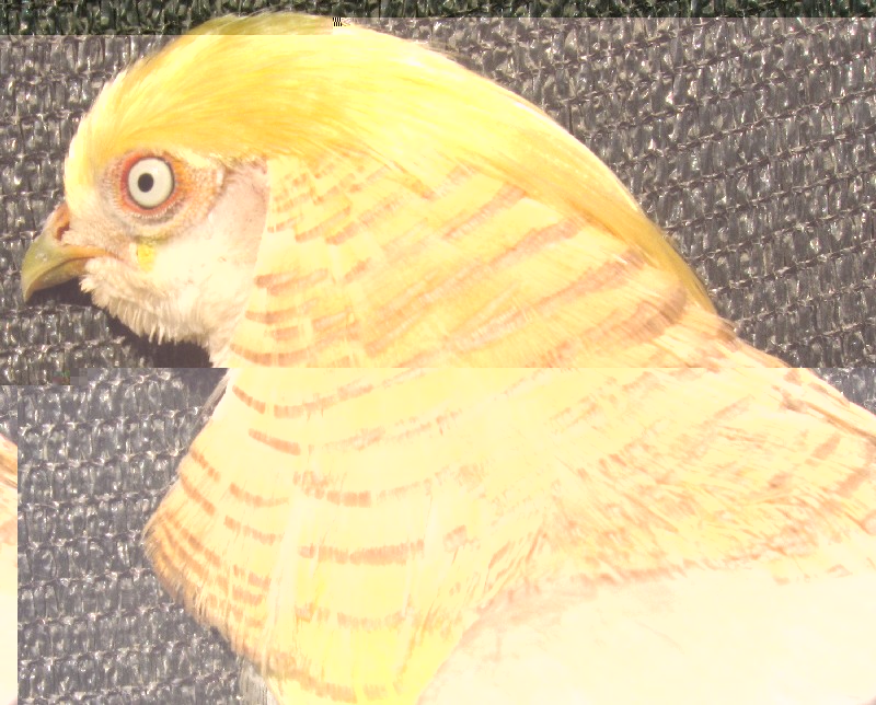 ciao simone,dalle foto la penso come te,il dorso e la coda sono del lutino,forse l'ala assomiglia al dorato mut.pesca,ma molto alla lontana,per il resto vedo che la schiena e la mantellina sono di un colore che non appartiene a nessuno standard,qui ci sono varie foto di qualche mutazione del fagiano dorato,particolarmente importanti sono la pagina 1 e la 10: http://www.backyardchickens.com/forum/v ... 128648&p=1" target="_blank" target="_blank" target="_blank