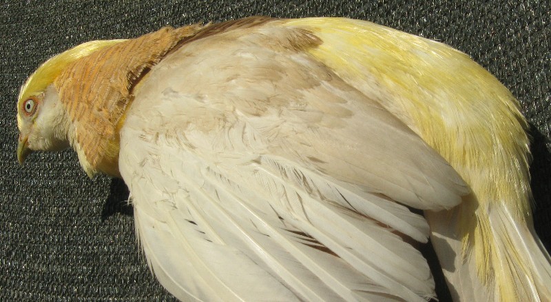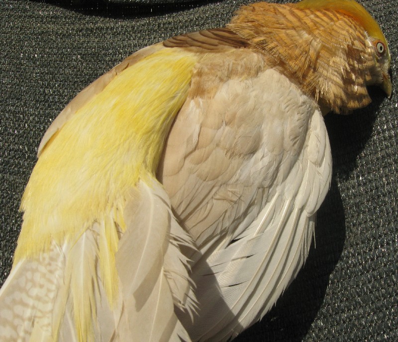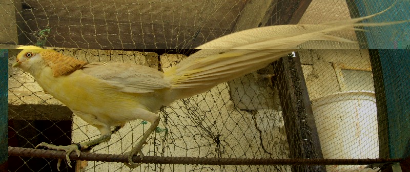 Questo fagiano è un dorato che ho preso a Reggio Emilia. Chi conosce questa specie avrà notato che non è un dorato giallo. L’allevatore dal quale l’ho preso insisteva che era un dorato silver, ma io ribadivo che non lo era e che come colorazione caso mai assomigliava alla mutazione color pesca piuttosto che ad una mutazione silver. L’allevatore mi ha detto di averlo preso in Germania e che tra la sua progenie ha generato 2 giovani con le piume bianche, poi da adulti forse avranno cambiato colore, ma non lo sa perché li ha venduti. Forse mi ha raccontato un mare di ca…..te, comunque il fagiano mi è piaciuto troppo e l’ho comprato. Cosa mi sono portato a casa non lo so ma sono contento di averlo fatto.