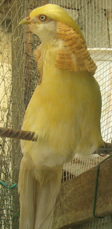 Molto bello. E' un fagiano dorato lutino: http://www.agraria.org/avicoli/fagiano-dorato.htmCiao, Marco