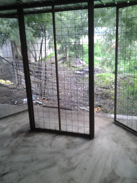 ..nel mezzo del lavoro ho modificato il progetto...apportando due modifiche..la prima..la base di cemento è lunga 30 mt e dovevano venirci 10 box 3mx3m invece al centro ho sacrificato 2 pollai 3mx6m per farci una stanza chiusa uso stanza da lavoro ,deposito,stanza incubatrici cosi in definitiva avro 8 pollai e 1 stanza 3x6 completamente chiusa seconda modifica nel progetto il fronte del pollaio era composto da 3 pannelli di rete 1mx2m 1 dei quali la porta e 2 fissi invece ho inserito una seconda porta dalla parte opposta in modo che nel periodo dei pulcini il pollaio diventi divisibile...sono soddisfatto del risultato