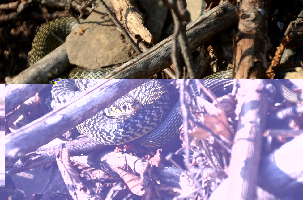 anche io ne ho visto uno pochi giorni fa, per la prima volta! era bellissimo così giallo e nero, gli altri serpenti che ho visto finora dalle mie parti erano più sul grigio o marrone o verde, tipo quello della prima volta! questo stava prendendo l'ultimo sole nel bosco ed era immobile, è scappato quando ho iniziato a fargli foto