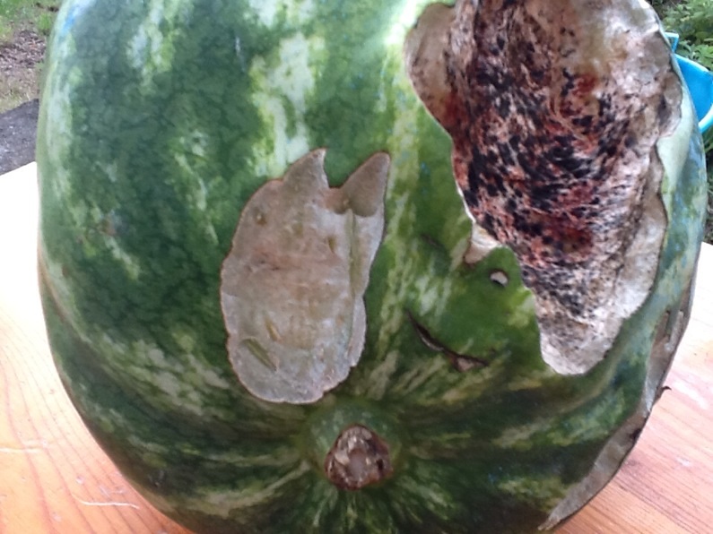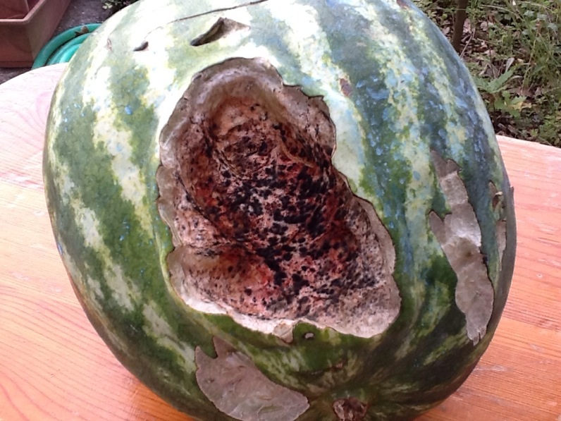 robert63 ha scritto: essa giaceva esanime senza vita e con evidenti segni di violenza ad una distanza dalla pianta di circa quattro metri." . Battute a parte il cocomero e'stato staccato dalla pianta,e considerando il suo discreto peso presumo che l'animale in questione  abbia una discreta forza per compiere questo gesto.
