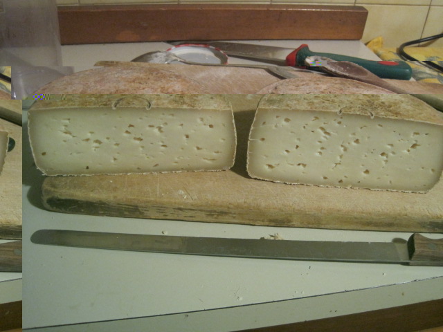 aperta la forma, 1kg circa. sapore ottimo. c'è un pò di occhiatura...