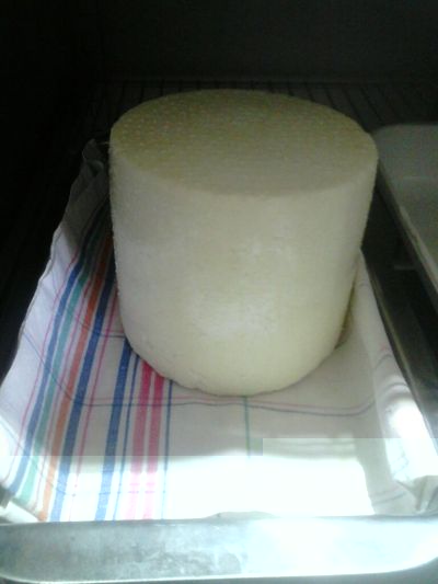 stamattina ho salato e messo in frigo,domani mattina lo peso e ti farò sapere. fatto con solo latte caprino.