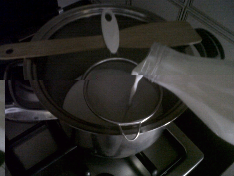 Ho riscaldato 2,3 litri di latte di capra a 33 gradi, ed incorporato 70 ml (3%) di lattoinnesto di capra e muffe Penicillium candidum in polvere; mescolo energicamente e lascio agire per 30 minuti.