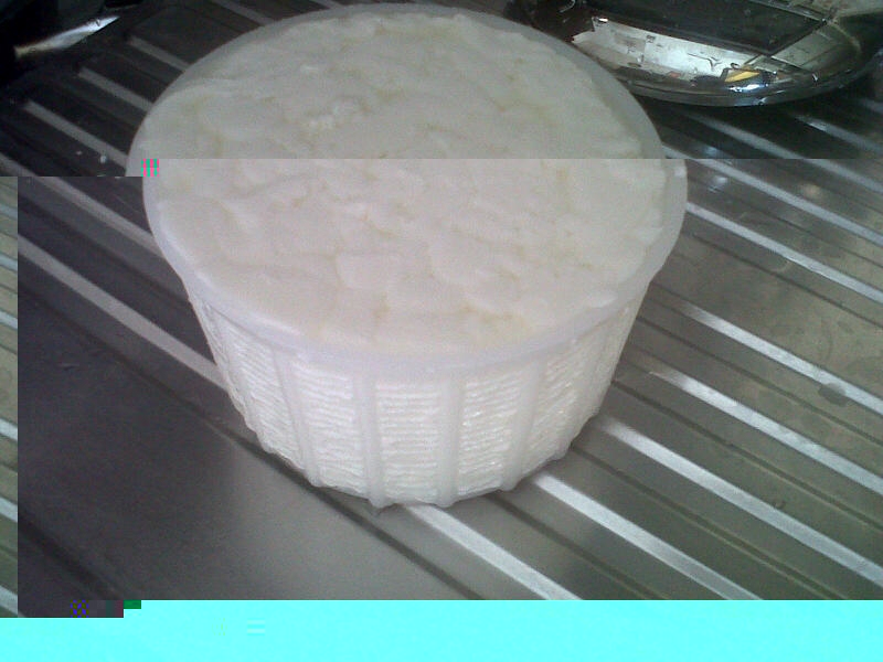 Già al quinto giorno il penicillium si è fatto avanti ed oggi che siamo all’ottavo giorno dalla sua produzione, ricopre (a vista) un buon 65-70% dell’intera forma.