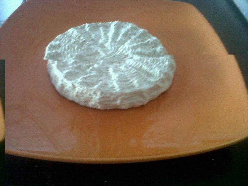 A questo punto prelevo della muffa penicillium da un pezzo di Camembert originale comprato al super, la sciolgo/diluisco in acqua e con un nebulizzatore, nebulizzo l’intera forma in tutte le sue parti.