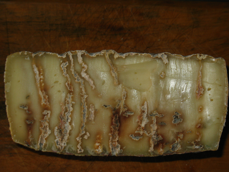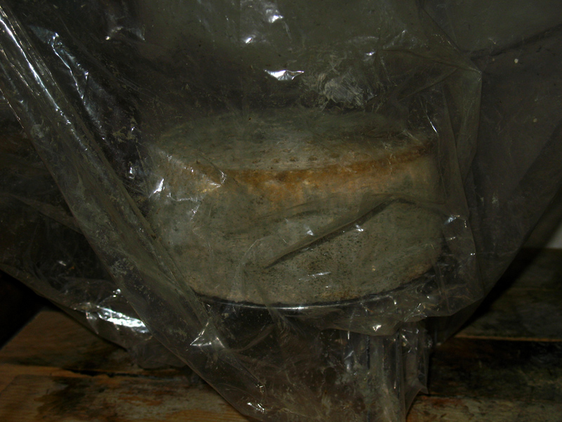 Oggi ho tagliato la forma dopo circa 2 mesi, ha un gusto forte di ammoniaca come se alle muffe gli fosse mancata l'aria per via dei fori ostruiti..