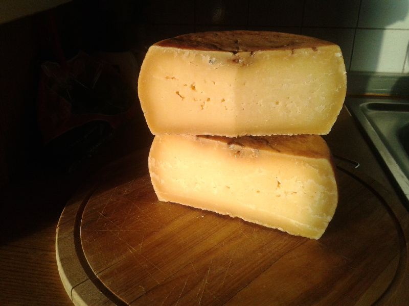 uno dei due allevatori che conosco ha ripreso a mungere, l'altro ieri quindi ho lavorato 10l seguendo questa lavorazione. le varianti: non ho pastorizzato, il latte era appena munto (piccola sgrattata d'obbligo  ),ho aggiunto una punta di mesofili che uso per la toma di capra. stufatura spinta: 35° con aggiunta di vapore per 3h abbondanti , pressatura a mano. attualmente è in salatura, purtroppo non credo di riuscire ad affumicarlo..non sono ancora attrezzato. le rese: 2010g e 650g di ricotta, forse un po' poca ma l'ho fatta pura, senza rinforzo. vorrei portarlo a quest'estate..se resiste