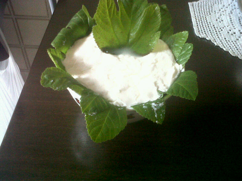 Il suo nome deriva dal fatto che va servito nel pampano dell’albero di fico (c’è anche chi lo serve nella foglia dell’uva). La particolarità di questo formaggio fresco è che va fatto con caglio naturale ottenuto proprio dall’albero di fico. In questo caso me lo sono autoprodotto (il procedimento che ho seguito l’ho postato nel post del caglio).