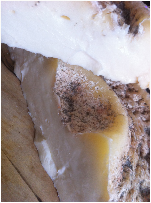 Ho tagliato una formetta fatta in contemporanea al "Montebòre" ufficiale (quindi con lo stesso procedimento, stesso latte e stessi tempi)...