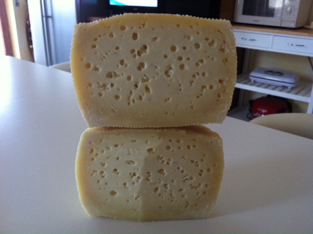 quella con un piccolo gonfiore incuriosito prima l'ho tagliato ed ecco il risultato... dalle occhiature sembrano che ci siano in mesofili  , ma è solo latte crudo, sapore ottimo con 30 giorni di stagionatura. X fasi, quasi quasi io inizio un pò di test pastorizzando...