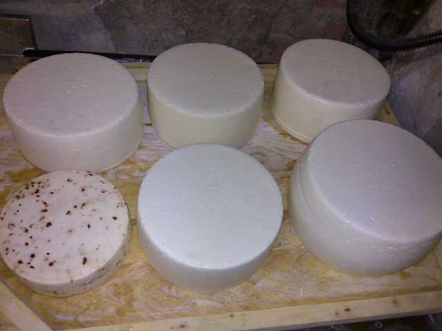 Sono uscite 4 forme da 2 Kg, una da 3,2 Kg e una da 1 Kg col peperoncino. Totale 12 Kg di formaggio (e 9 Kg di ricotta....), non mi sembra male Ora sono in salatura, poi una affumicatura e... via in cantina !!!