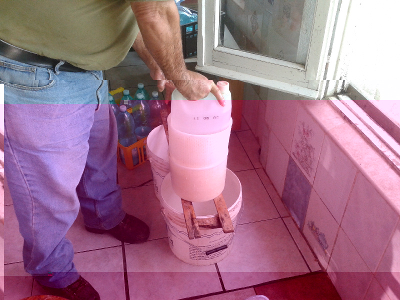sistema quindi sopra un'altra fuscella uguale dove mette un peso (tanica da 5 lt) dello stesso peso della forma Allegato: