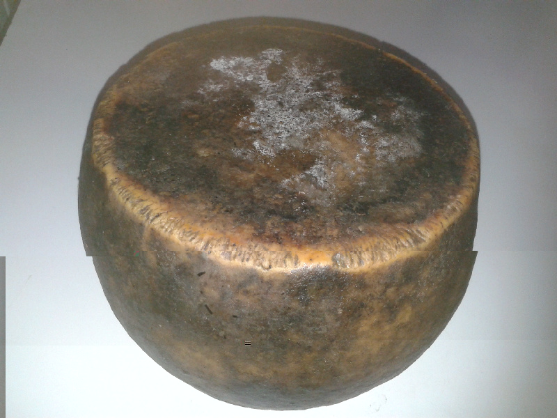 Per completezza di informazione aggiungo alcuni dettagli che mi sono dimenticato. La pressatura si protrae per tutto il pomeriggio, a sera il formaggio viene salato dentro la fuscella sulla parte superiore scoperta con un pugno di sale. Il giorno seguente il formaggio viene rivoltato e rimesso in fuscella e salato come sopra. Il giorno seguente rivoltato di nuovo, salato sullo scalzo, rimesso in fuscella e un pò di sale sulla faccia rimasta scoperta (che sarebbe la prima). Il giorno dopo tolto dalla forma, lavato con acqua e messo per 2 o 3 giorni dentro 'sa muschera' (spero di averlo scritto giusto), una specie di contenitore appeso al soffitto con telaio di legno e pareti di fitta zanzariera dove i sardi usavano mettere le provviste a conservare. Poi in cantina, unto spesso di olio e rivoltato quotidianamente. Queste sono due forme del peso di circa 3 Kg l'una che ho acquistato direttamente da lui (in realtà una me l'ha regalata !!!  ) Allegato: