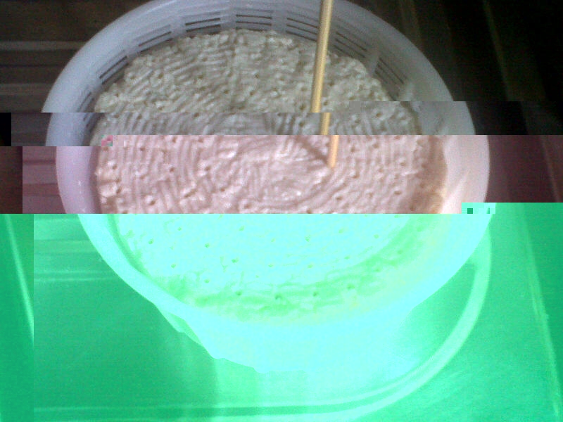 Quattordicesimo giorno di stagionatura, il ph del Roquefort è sceso a valore 5.0, da ora in poi si dovrebbe assestare per poi risalire. Stamattina ho riallargato un pò i fori con lo stecco da spiedo, le muffe all'interno stanno prendendo il sopravvento perchè lo capisco dall'odore che fa lo stecco in legno quando lo estraggo dalla forma. Anche all'esterno, come potete vedere dalle foto, negli interstizi che si sono formati nell'unione debole delle parti di cagliata, si può notare lo sviluppo del roqueforti. L'odore, credetemi è SENSAZIONALE  .La stagionatura prosegue su un piano di quercia e ogni 3-4 ore la forma poggiata sullo scalzo viene fatta ruotare di un pò. A presto.