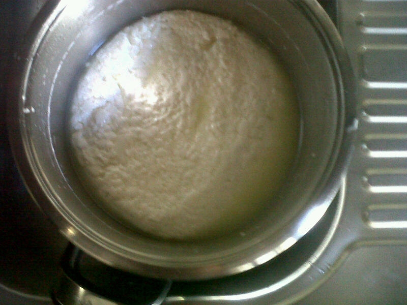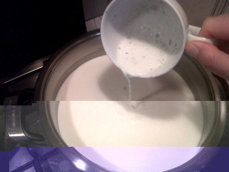 Prendo 6 litri di latte di pecora, ne prelevo 300 ml e preparo il lattoinnesto che, dopo 15 ore rompo con la frusta e metto in frigo.