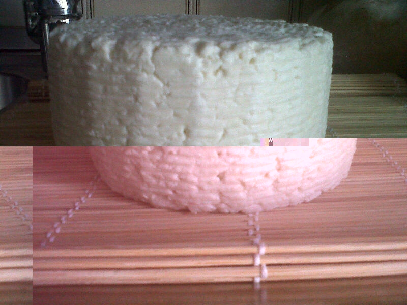 Come si presenta la cagliata dopo i 45 minuti di pre-sgrondatura; ha perso tanto siero e sembra polistirolo.