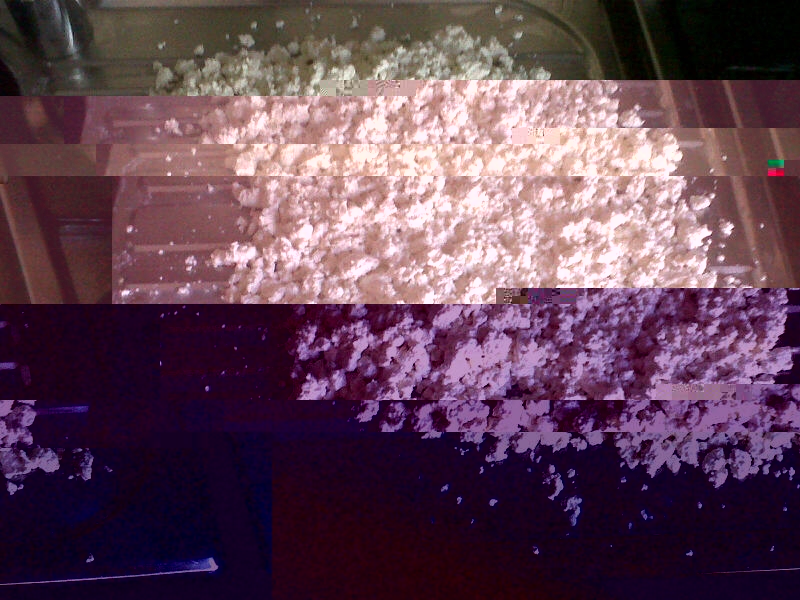 Lascio in questa situazione di pre-sgrondatura da siero per 45 minuti, rivoltando con delicatezza un paio di volte la cagliata che, a vederla mano a mano che passa il tempo, sembra polistirolo, segno che la diminuzione della coesione delle micelle stà avvenendo molto bene.