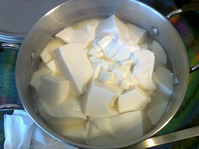 alemax ha scritto: salve a tutti vorrei sapere come si potrebbe fare un formaggio di pecora con crosta che abbia una pasta cremosa tipo stracchino /brie, cioè che fermenti usare e quali tecniche di lavorazione, facendo una lavorazione con tecnologia e fermenti da stracchino non sono riuscito ad ottenere una pasta cremosa. ho fatto diverse lavorazioni con latte ovino,e non sono mai riuscito a fare uno stracchino che stracchini,secondo me perchè la cagliata essendo molto forte non riesce a fare questa benedetta proteolisi(si chiama cosi o sbaglio  )in compenso ho avuto delle rese pazzesche questa è l'ultima lavorazione,2 litri, pesato dopo 12 ore di fuscella,praticamente non ho neanche fatto il secondo taglio per lasciare i pezzi piu grandi possibile,