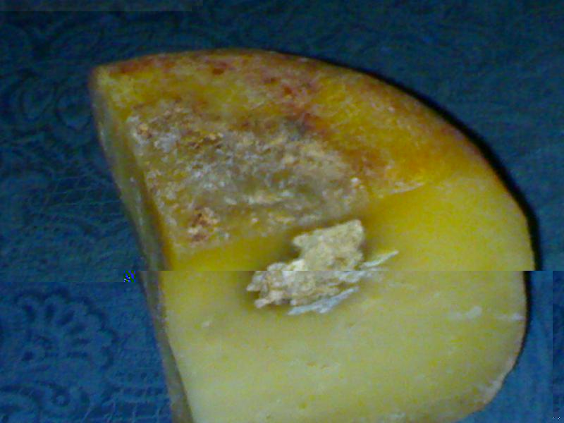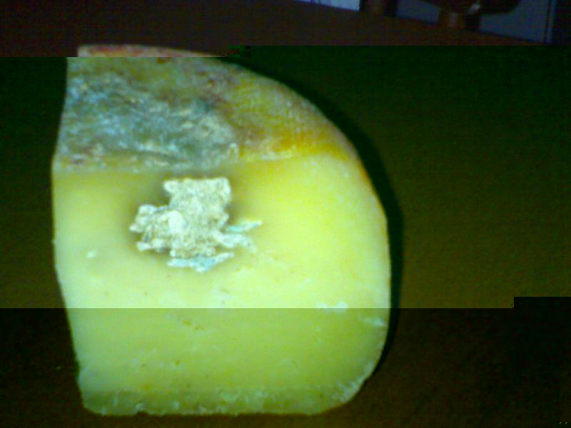 In effetti una piccola voragine sulla crosta era presente.. Era l'ultimo di una serie di 6 formaggi farciti (con pistacchio castagne tartufo origano timo peperoncino)...tutti perfetti senza muffe...Da quest'ultimo senza farcitura ..mai mi sarei aspettato la presenza di muffe...mah...