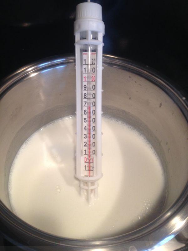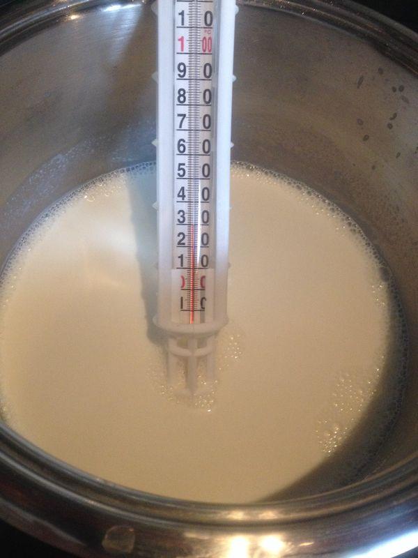 Parto da 2 litri di latte di pecora, pastorizzo a 72 gradi per 20 secondi ed abbatto alla temperatura di 30 gradi;