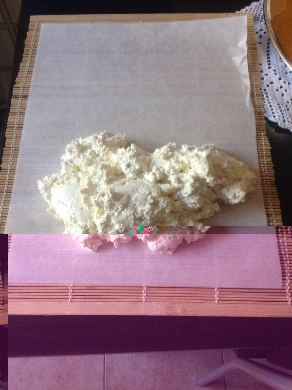 L’indomani mattina, faccio un rivoltamento e dopo 3 ore prendo le fuscelle, le svuoto in una ciotola di plastica e spappolo la cagliata che ha un odore sensazionale di panna.