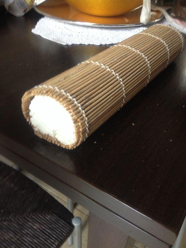 Arrotolo sia la carta forno che la stuoia di legno in modo che il formaggio, prende la forma di un cilindro/tronchetto ed utilizzo la stuoia come un nastro stringente, per regolare il diametro finale che dovrà avere il mio tronchetto lattico.
