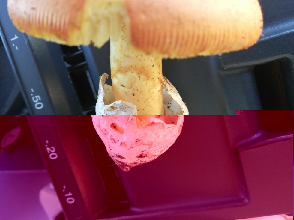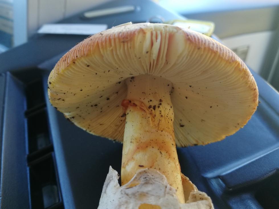 Ok. Caesarea Controlla sempre che la volva sia presente e che termini a cono in giù. Se termina a sfera carnosa e il gambo non presenta colore giallino.......alt! Fai attenzione ai funghi con colore aranciato molto simili ma che non hanno volva al gambo ma sono napiformi è che risultano a volte simili.... ma sono invece Amanite muscaria. Tossico ma non velenoso. Spesso la piogia dilava il capello e toglie le verruche residue bianche sul cappello e lo sbiadisce da rosso a arancio. Ciao