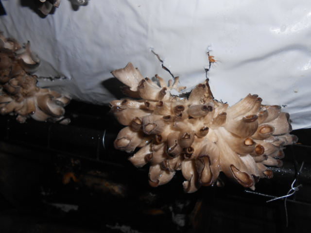 i funghi in questione sono ostreatus, soltanto ke hanno mancanza d'aria e di luce...peccato potevi far una bella raccolta,