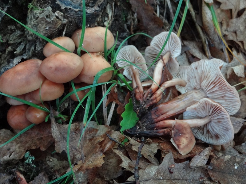 Anche Collybia kuehneriana (= Gymnopus erythropus) gli potrebbe somigliare un po’, ma è più piccola, con il gambo non costolato fusiforme, che ha un colore sul rossastro.