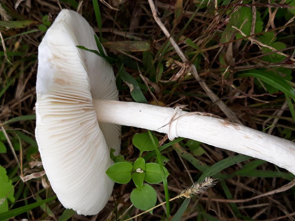 Leucoagaricus leucothites perchè hai menzionato <nel prato senza alberi> anche nel mio giardino ne crescono vari....