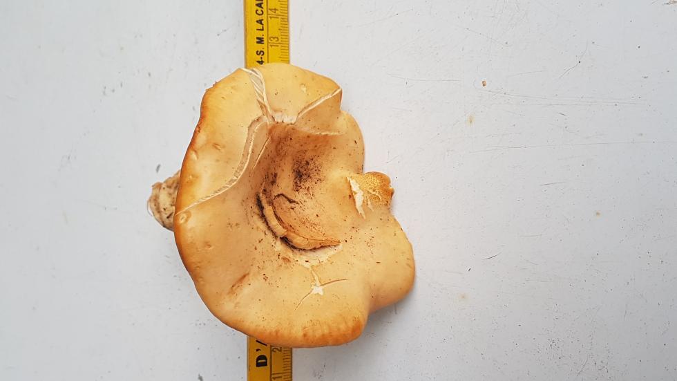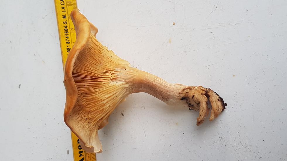 come dice marco la foto aiuta poco. secondo me il fungo è troppo esile e il cappello ondulato escludo che si tratti della geotropa. potrebbe trattarsi della clitocybe infundibuliformis.ciao
