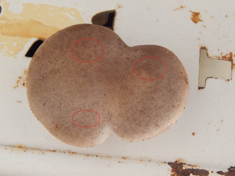 salve scrivo per avere un vostro parere su delle macchie comparse sui cappelli dei fungi di colore marroncino sparse in maniera uniforme...so che generalmente la batteriosi si presenta in prima battuta in questa maniera e postando delle foto vorrei un vostro parere grazie in anticipo per le risposte