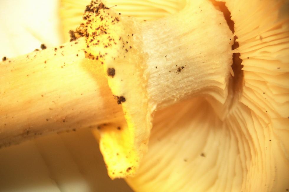 circoncisa e dissociata in cercini, con anello ad inserzione sul gambo sempre più basso rispetto a tutte le altre amanite anellate,