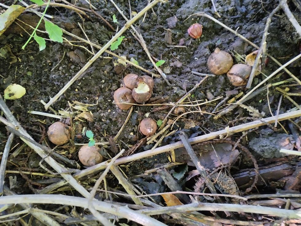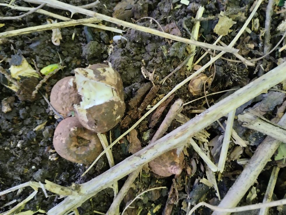 nella foto 2 direi Geastrum triplex, si vedono frammenti della coroncina stellata che li racchiude e poi si apre a forma di stella.
