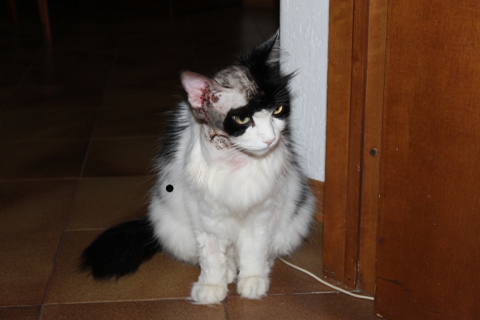 ragazzi ieri hanno finalmente operato il micio! aveva una grossa infiammazione all'orecchio interno ha quello che ho capito dietro il timpano e gli si era riempita di materiale infetto la bolla timpanica tanto che si è rotta. ora è stato operato l'operazione è stata un pò più complicata del previsto perchè da prima dovevano mettere solo un drenaggio ma poi visto che era irrimediabilmente compromesso hanno asportato anche i canale uditivo ora è impaurito ma finalmente starà bene  spero solo che l'esame istologico non ci riservi brutte sorprese. un saluto a tutti. miria